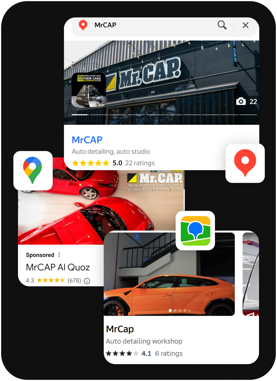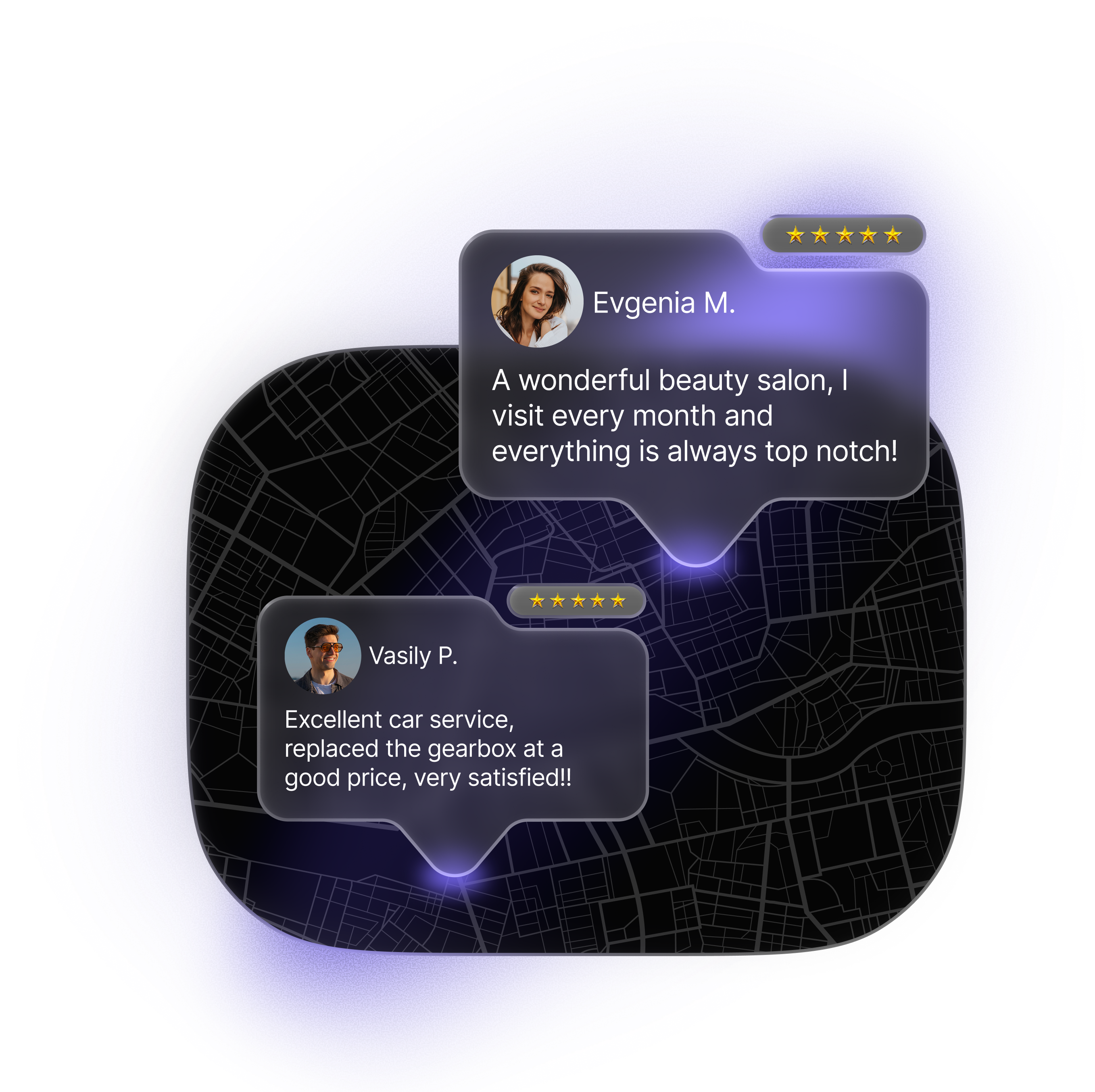 On Yandex and 2GIS, the rating is built from real reviews — it affects your company’s visibility in search results.